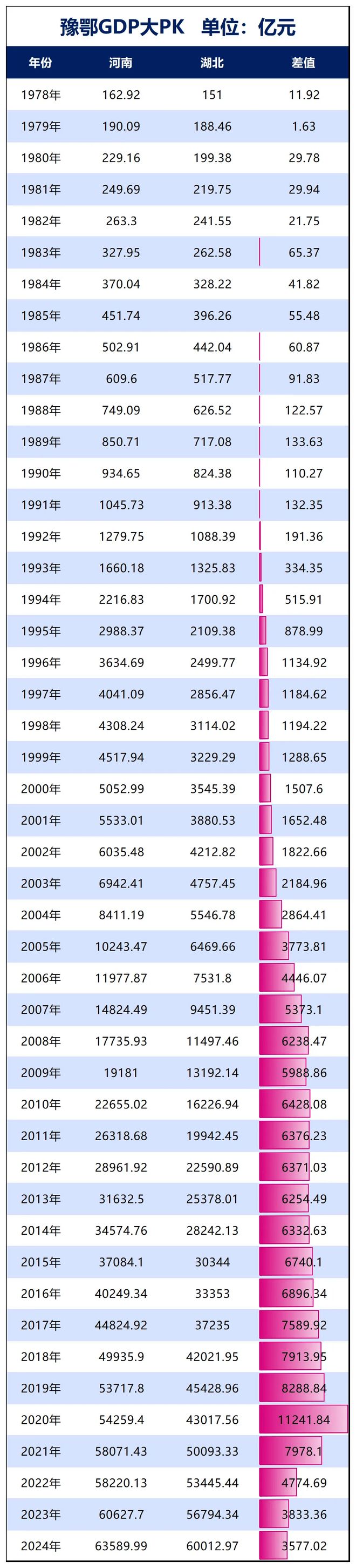 然而,过去四年湖北快速将差距缩小,到2024年年末,差距已经缩小至3577.02亿元。