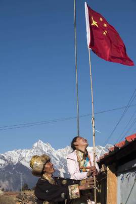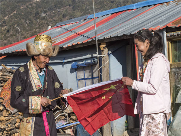 9个月后,这里国旗猎猎,经幡飘扬,人们穿着崭新的藏装,敬“切玛”,喝青稞酒,欢度春节和藏历新年。