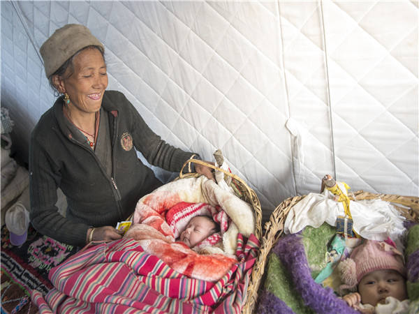 地震时,房屋倒塌之际,米玛连推带踢,将躺在竹筐里的两个月的孙子和7个月的外孙女弄到墙角,俯身撑护着,躲过一劫。“人在,就没事。”米玛在采访时显得很平静。