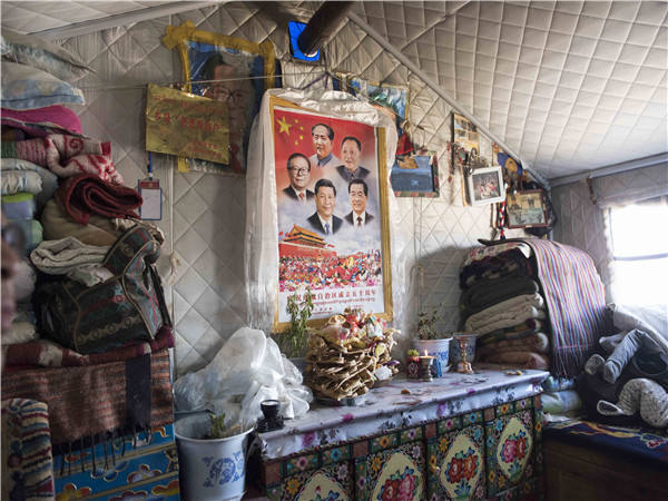 站在领袖像前,旺堆用不太流利的汉语告诉我们:“我有两个爸爸:一个是亲生爸爸,一个是爸爸。”