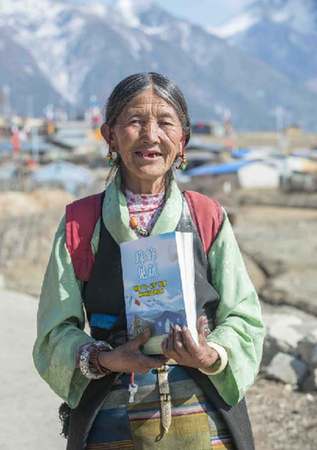 在村中大道上,我们碰到去拜年的巴桑阿妈。她那张站在雪山、国旗、帐篷前双手合十的照片,印在新华社地震报道作品选――《珠峰见证》一书的封面上。拿着书,老人忙不迭地给旁边的村民看自己的照片,笑得合不拢嘴。