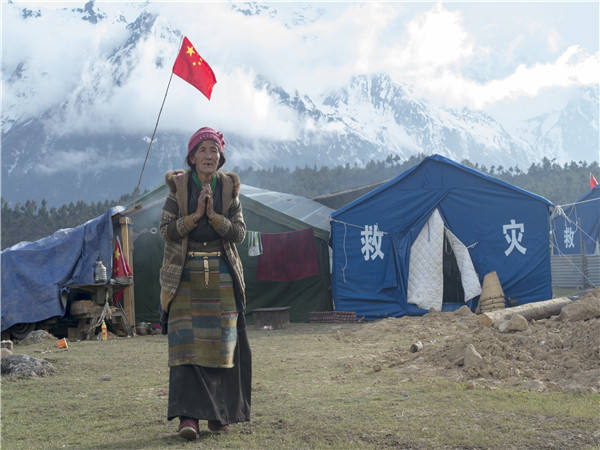 感恩的话,受灾群众从震后一直说到现在。帐篷搭好了,每家每户自发地把领袖像悬挂在正中位置,藏历新年挂好新国旗,表达的是对党和国家的不尽感激。